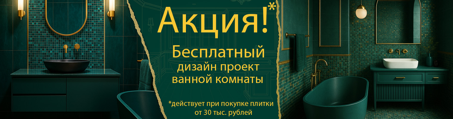 При заказе плитки от 30 000₽ в подарок 3D дизайн-проект ванной!