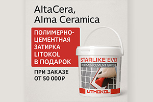 AltaCera, Alma Ceramica - полимерно-цементная затирка Litokol в подарок при заказе от 50 000₽