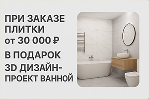 При заказе плитки от 30 000₽ в подарок 3D дизайн-проект ванной!