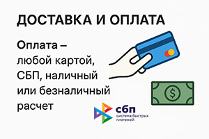 Оплата - любой картой, СБП, наличный или безналичный расчет.